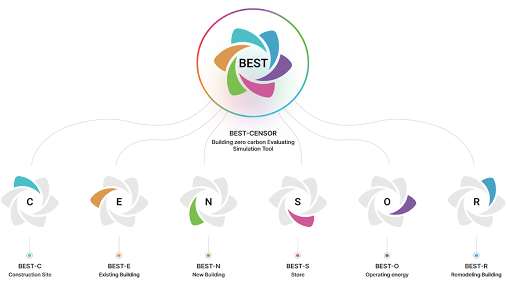 BEST-CENSOR(Building zero carbon Evaluating Simulation Tool-CENSOR)는 ZCB 인증 기준에 따라 개발된 전용 웹 기반 프로그램으로, 모든 용도의 건축물(상점, 건설현장 포함)을 대상으로 내재탄소 및 운영탄소의 배출량과 감축량을 정량적으로 평가합니다.